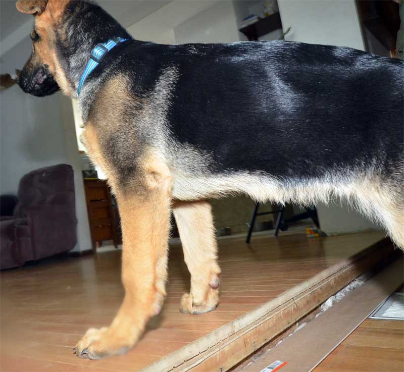 Commentaire du Maitre : Voici quelques photos de mon petit. Il pesait 82,6 livres chez le vétérinaire. Nous avons acheté son traitement révolution. Toujours actif et gardien, il ne manque pas une occasion pour venir jouer avec moi s’est un jeux pour lui.